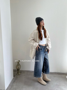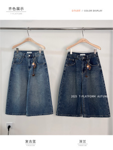 [简裁]T-PLATFORM 美式复古高街牛仔裤个性穿搭秋季七分裤93025