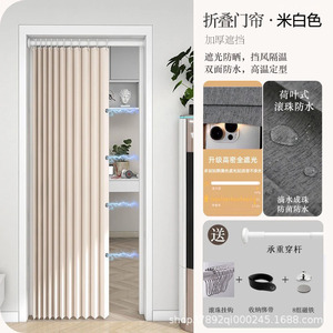 磁吸折叠门帘【米色帘+伸缩杆+挂钩+绑带】