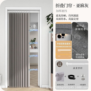磁吸折叠门帘【灰色帘+没有杆+挂钩+绑带】