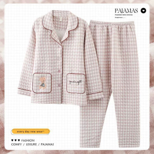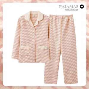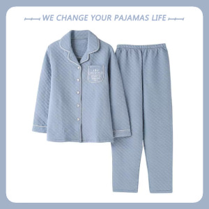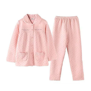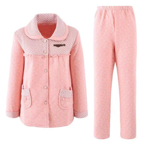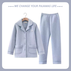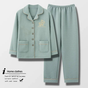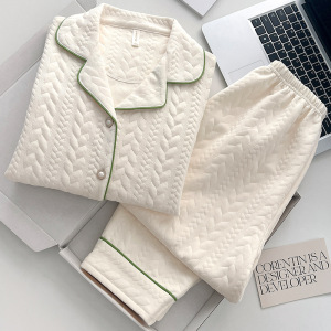 5A抗菌2025新款绿边睡衣女秋冬季空气棉夹层加厚保暖夹棉甜美家居