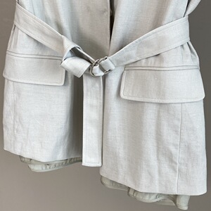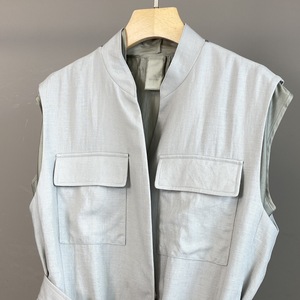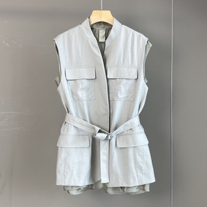 南油篙品2025早秋BC新款时尚百搭亚麻V领无袖配腰带马甲针织上衣