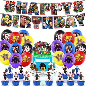 新款沙盒游戏主题生日派对装饰生日拉旗蛋糕插牌气球吊旋布置现货