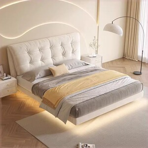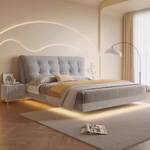 云朵悬浮床现代简约绒布床设计师意式极简主卧床奶油侘寂风软包床