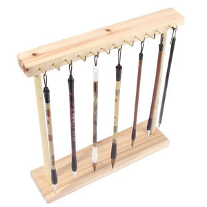 原木色松木方形大号毛笔挂架双排钩高40厘米
