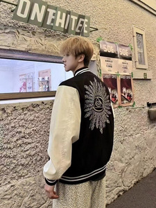 美式复古st太阳光明之眼刺绣棒球服高街男女情侣网红同款夹克外套