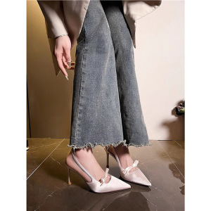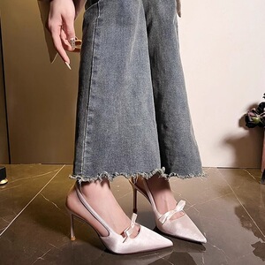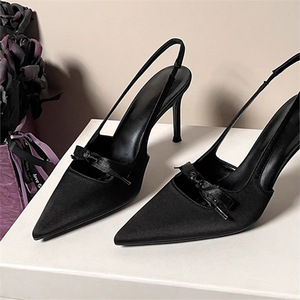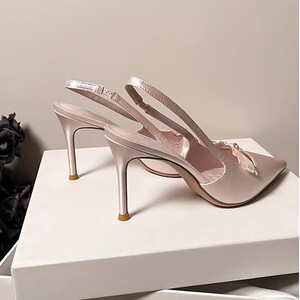 香港绸缎气质高跟鞋女2025夏季新款法式蝴蝶结配裙子包头后空凉鞋