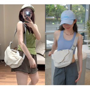 lulu磁吸包运动斜挎包女2025新款健身骑行腰包尼龙饺子包单肩挎包