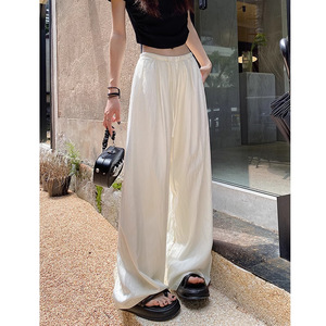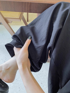 胖mm黑色阔腿裤女夏季薄款2025新款冰丝褶皱防晒大码休闲拖地裤子