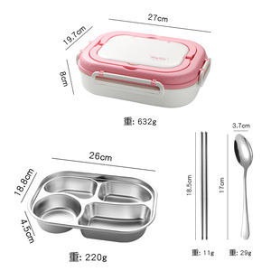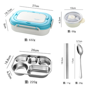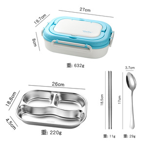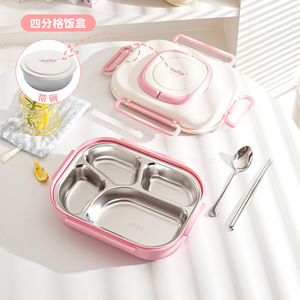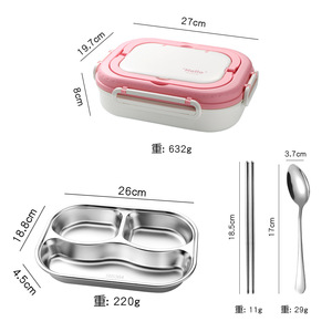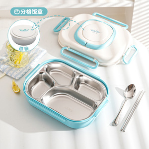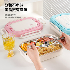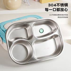 粤帝斯直供 304不锈钢带餐具分格便当盒学生上班族保温饭盒 跨境