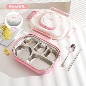 粉色HELLO款【五格+汤碗+餐具】