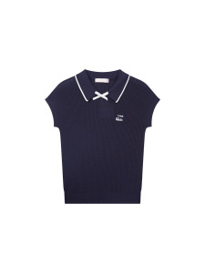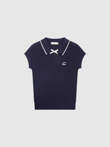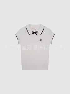 【华家POLO领蝴蝶结绣花飞袖针织衫】撞色翻领气质减龄百搭上衣