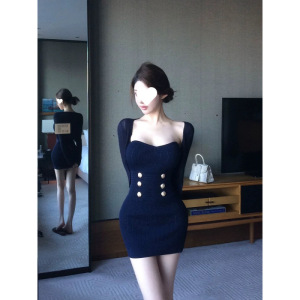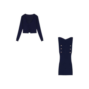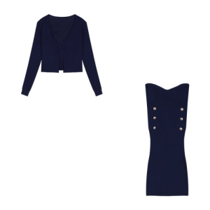小香风套装气质长袖针织开衫女早秋抹胸连衣裙包臀短裙时尚两件套