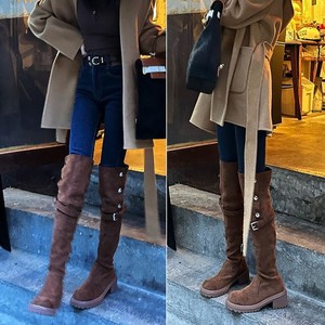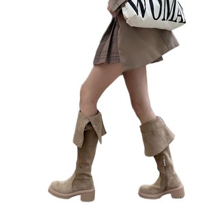 复古两穿翻折厚底西部靴秋冬新款麂皮绒长筒靴粗跟过膝长靴骑士靴