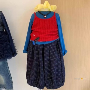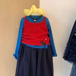 童装女童多巴胺套装秋季小女孩彩色叠穿针织吊带打底衫波点灯笼裤