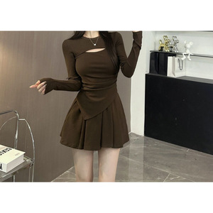秋冬新款小个子赫本风法式长袖连衣裙子女秋冬季辣妹收腰两件套装