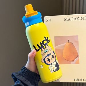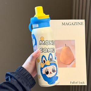 新款保温杯双饮吸管女神杯拉布布304不锈钢卡通学生提环运动水杯