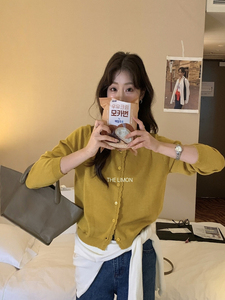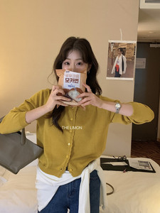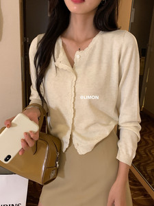 THE LIMON柠檬绿茶韩系简约通勤显瘦百搭花边长袖针织开衫女秋冬