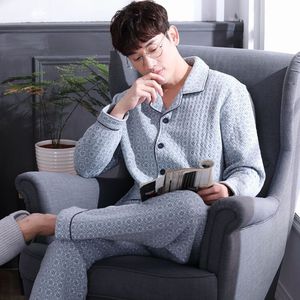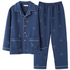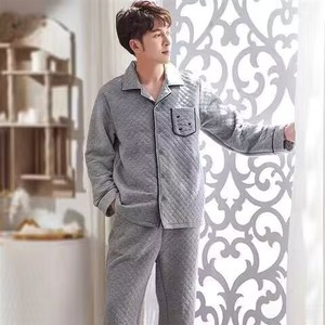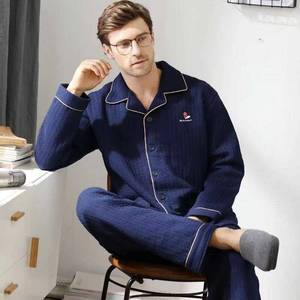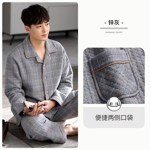 睡衣男士春秋季加厚纯棉长袖短袖家居服薄夹夹层空气棉套装