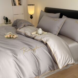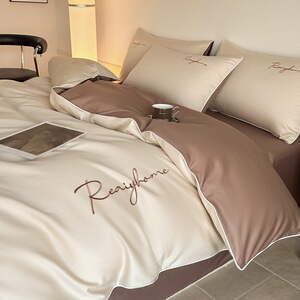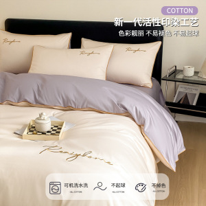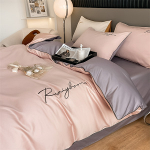轻奢120支新疆长绒棉四件套全棉刺绣被套纯棉裸睡床单床笠款床品4