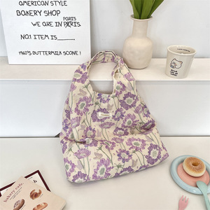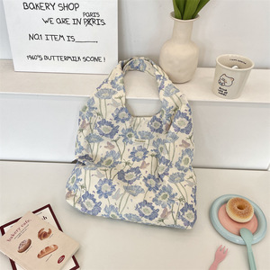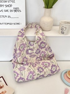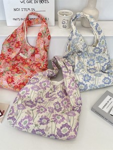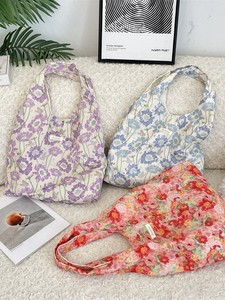 5791 新款洋气田园风碎花单肩手提包通勤大容量背心包外出帆布袋