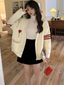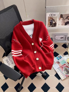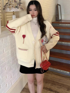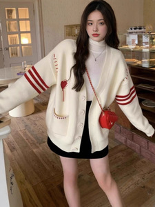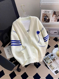 韩系秋冬新款温柔慵懒风毛衣外套女宽松V领上衣高级感针织开衫女