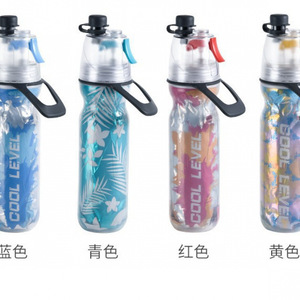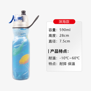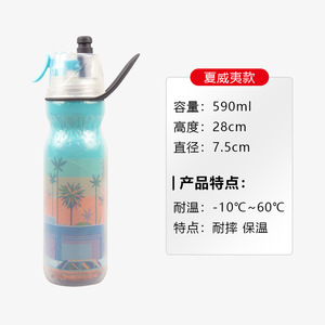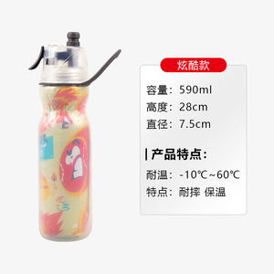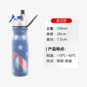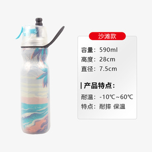 便携提环PE网红喷雾杯多功能户外运动喷水壶双层跨境保冷喷雾水杯