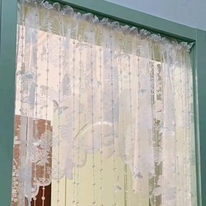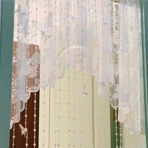 ✅梦幻隔断帘半帘卫生间蝴蝶蕾丝帘子免打孔小清新纱帘珠帘组合门