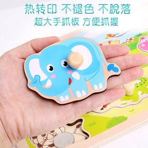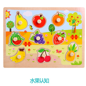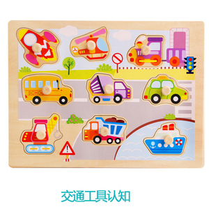 亲子木制钉手抓板木质交通动物水果形状数字系列早教益智拼板游戏