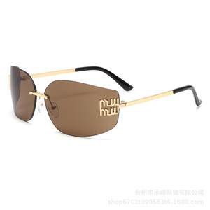 新款女士金属无框曲面一体式墨镜太阳镜Y2K潮流穿搭太阳眼镜批发