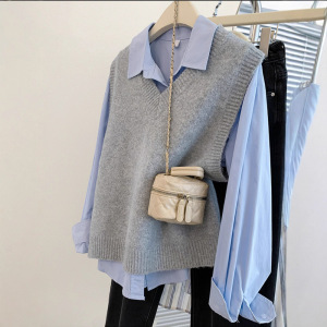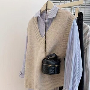 纯色V领坎肩针织马甲女2025秋冬季毛衣背心韩系简约叠穿马夹外搭