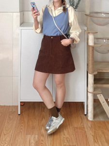 大码胖mm灯芯绒半身裙女夏季新款咖色a字短裙小个子显瘦包臀裙子