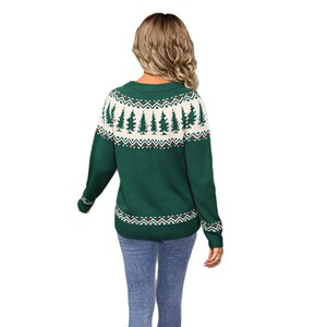 2025冬季新款欧美外贸外贸跨境圣诞毛衣圆领提花圣诞树绿色毛衣女