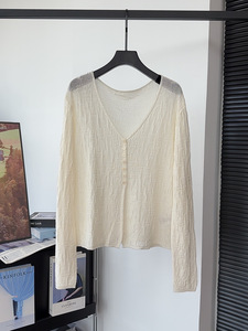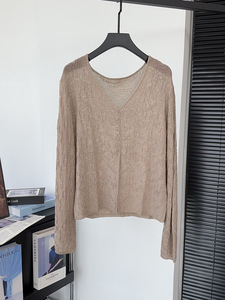 25早秋新品和纸纱V领慵懒镂空松弛感单排扣针织长袖开衫薄外套女