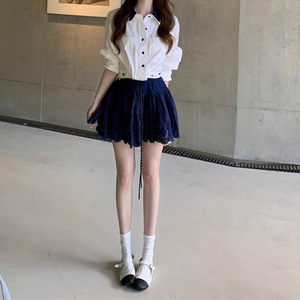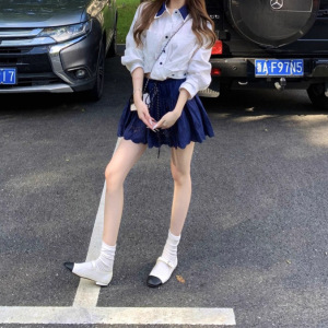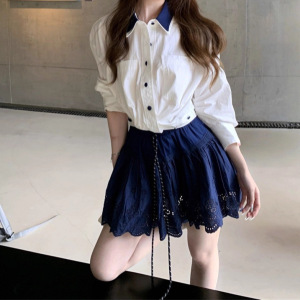 学院风POLO领单排扣长袖衬衫女2025新款夏季显瘦半身裙短裙两件套