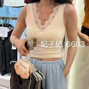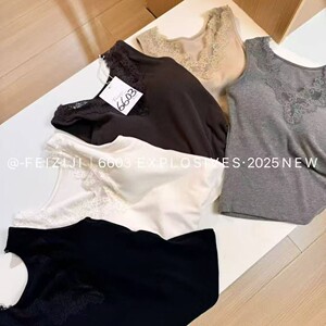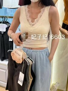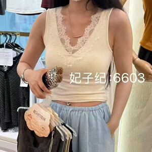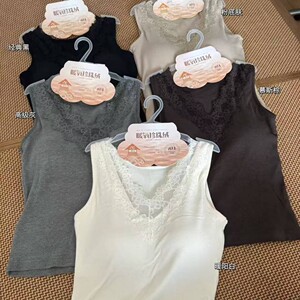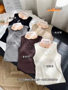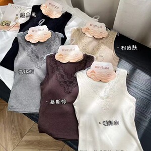 枫之欣6603秋冬新款V领蕾丝暖氧珍珠绒螺纹一体式固定杯吊带背心