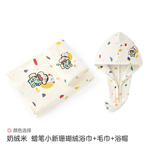 穿睡衣的蜡笔小新毛巾浴巾套装女彩珊瑚绒干发帽浴裙四件套柔软