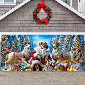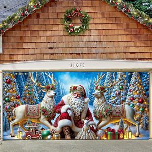 跨境新品2D麋鹿圣诞大型圣诞车库门盖圣诞快乐户外假日装饰横幅