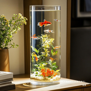 超白亚克力鱼缸透明仿玻璃金鱼缸圆形圆柱形客厅桌面小型防摔塑料