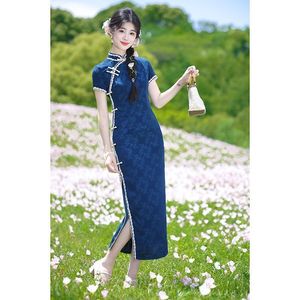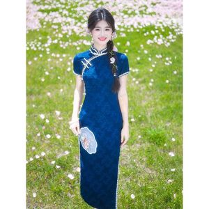 新中式旗袍2025新款改良年轻款少女日常民国风女装复古蓝色连衣裙