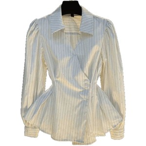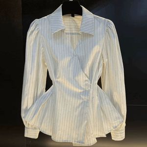 常规显瘦女春季新款时尚高端设计感POLO领条纹长袖上衣女潮