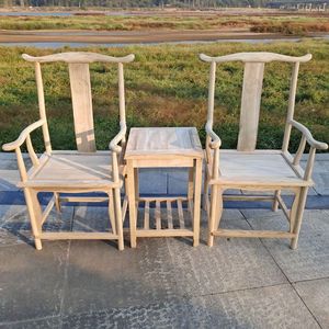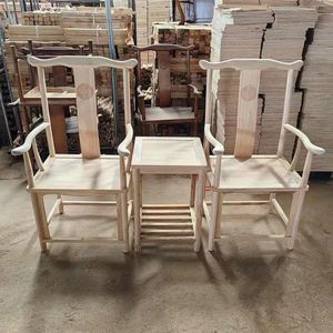 实木仿古椅子南榆木圈椅官帽椅月牙椅太师椅配茶桌组合白胚散装