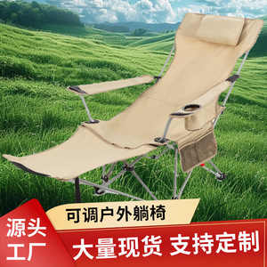 户外折叠躺椅便携钓鱼椅月亮椅带腿托三挡调节沙滩椅办公室午休椅