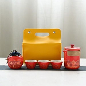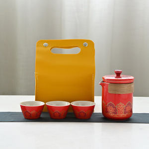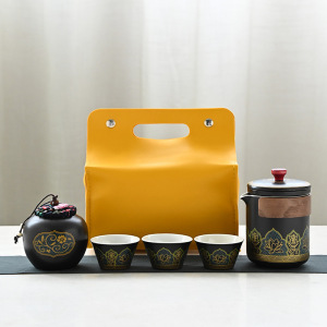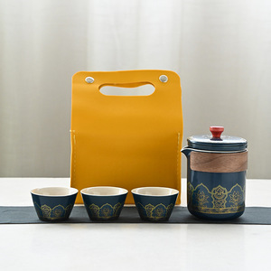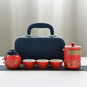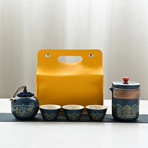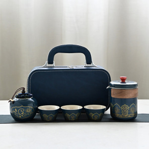 蓝皮包古韵暗香旅行茶具套装便携式陶瓷快客杯户外茶具泡茶壶礼品