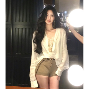 从一时刻【素颜衬衫】高支亚麻纯色显瘦气质感慵懒风春夏新款衬衣