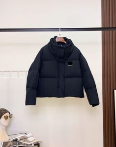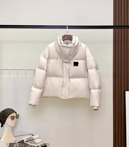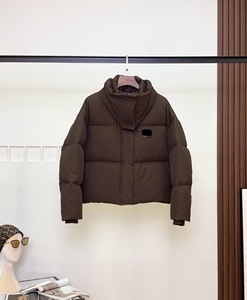 2025MIU家新款鹅绒短款羽绒服女宽松立领外贸长袖咖色户外服装