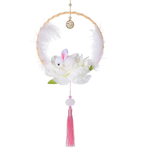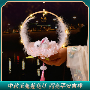 中秋羽毛兔子灯笼批发手提发光玉兔花灯汉服古风diy手工材料挂饰