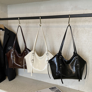 跨境潮流包包女复古通勤托特包大容量斜挎包松弛感洋气纯色单肩包