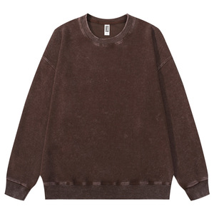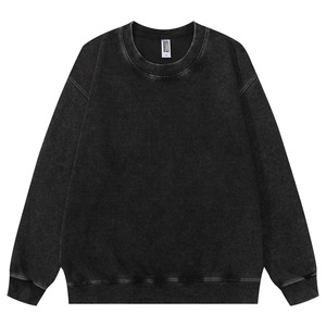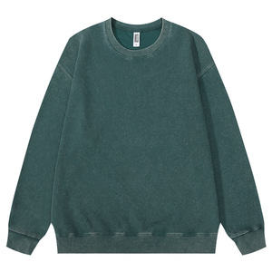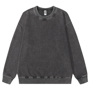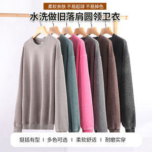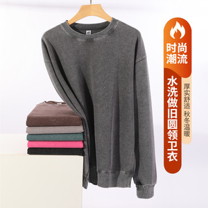 跨境360克重磅水洗做旧圆领卫衣复古宽松落肩百搭蜡染上衣打底衫