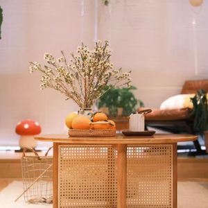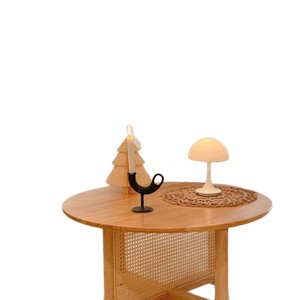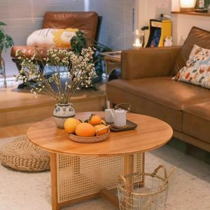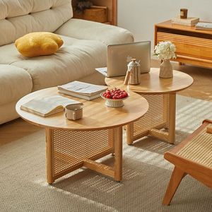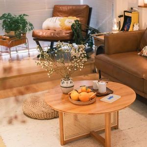 藤编茶几圆形边几原木简约家用民宿实木酒店奶油客厅阳台桌子茶桌
