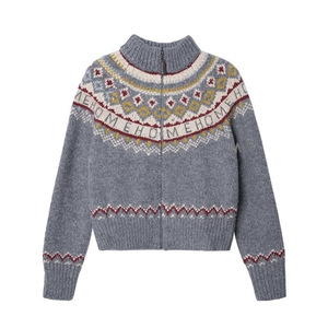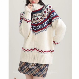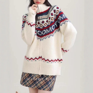 费尔岛高领毛衣女秋冬季2025爆款上衣复古慵懒风针织开衫外套女装